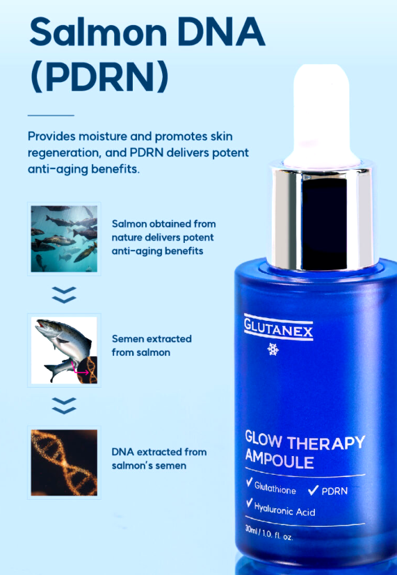 But that's not all. GLUTANEX GLOW THERAPY AMPOULE goes beyond basic skincare with the inclusion of PDRN, an innovative active ingredient derived from Salmon DNA. At a remarkable concentration of 10,000 parts per million, PDRN works wonders in restoring the texture and smoothness of your skin.